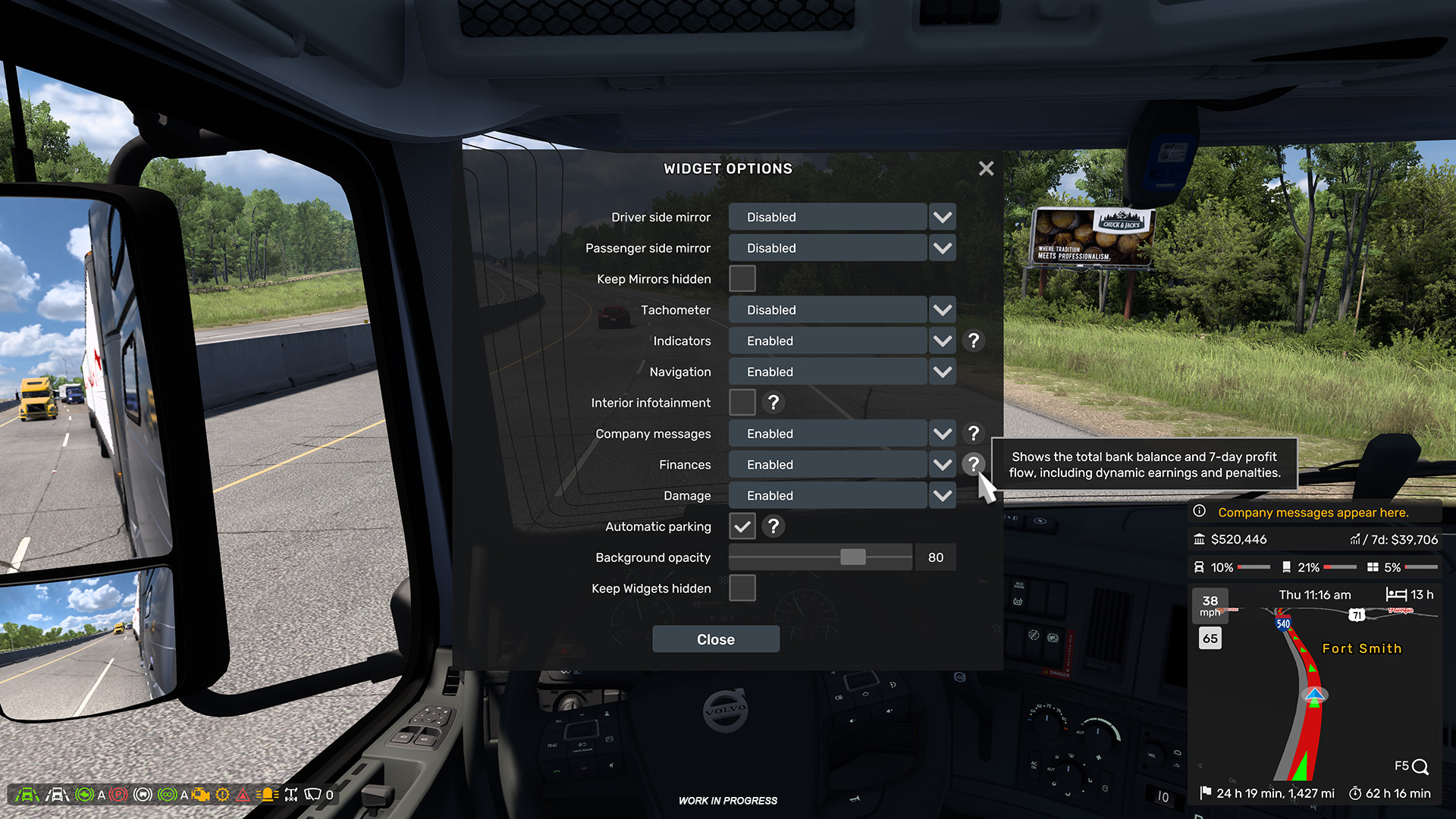 Теперь вы можете добавить виджеты «Повреждения» и «Финансы». Они позволяют легко отслеживать состояние грузовика, прицепа и груза, а также проверять баланс банковского счета и среднюю прибыль за последние семь дней.