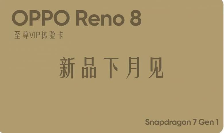 Первые смартфоны на однокристальной платформе MediaTek Dimensity 8000 и 8100 уже вышли, сейчас пришла очередь дебюта моделей на новой SoC Qualcomm среднего уровня – Snapdragon 7 Gen 1. Одной из первых таких моделей окажется Oppo Reno 8.