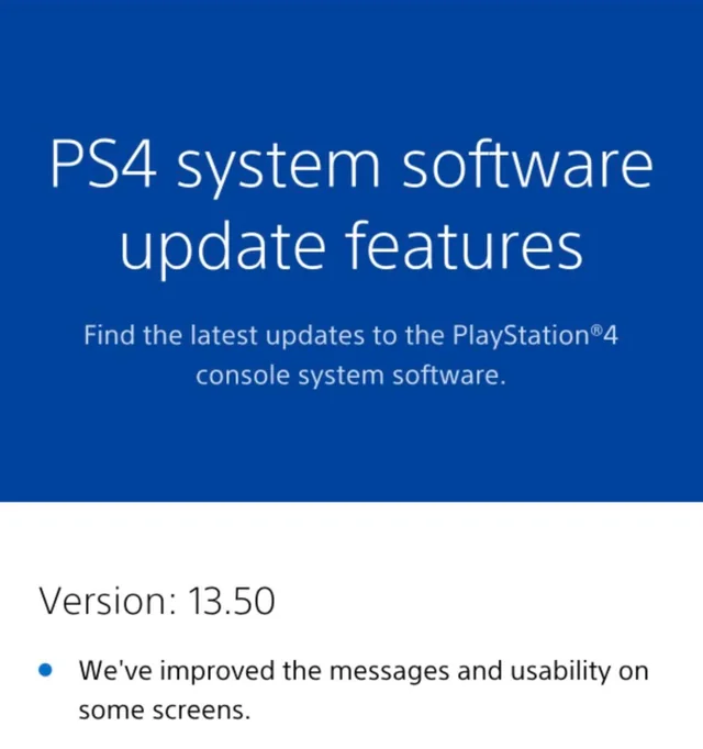 В марте компания выпустила для консоли PlayStation 4 обновление системного ПО версии 13.50. Официальный список изменений ограничивается дежурным пунктом с лаконичным описанием: