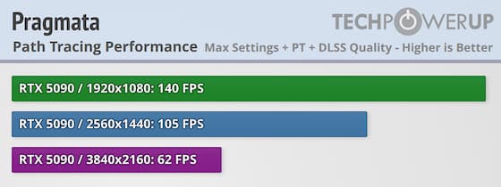 В разрешении 4K при максимальных настройках графики RTX 5090 выдает солидные 138 к/с без использования трассировки лучей. Включение последней практически не сказывается на частоте кадров — результат проседает лишь до 121 к/с, что типично для проектов на этом движке. Однако использование трассировки пути (path tracing) становится серьезным испытанием: кадровая частота падает вдвое, до 62 к/с. Важно отметить, что эти показатели получены «в чистом виде», без помощи апскейлеров или генерации кадров. Кроме того, технология трассировки пути, как и в последних частях Resident Evil, реализована эксклюзивно для графических ускорителей Nvidia.