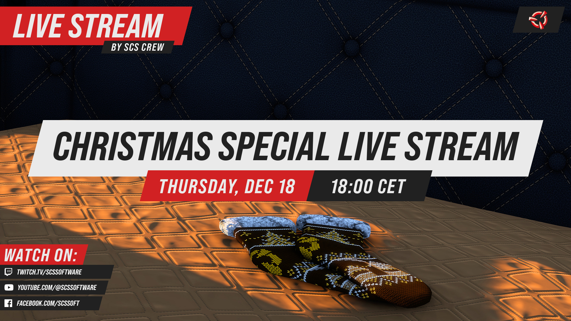 Также отметьте в своем календаре 18 декабря, с 18:00 CET, для нашего ежегодного Рождественского стрима с участием Павла Шебора! Как обычно, будет много интересных обновлений, некоторые анонсы грядущего контента, но, безусловно, будет много веселья с ноткой магии SCS! Стрим пройдет на наших страницах Twitch, YouTube и Facebook, так что не пропустите!