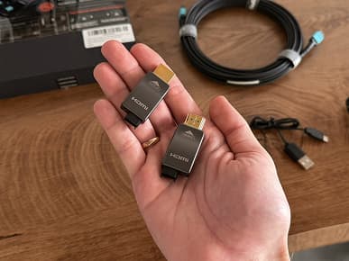 На американском рынке дебютировал премиальный HDMI-кабель от компании Ruipro. Несмотря на традиционный форм-фактор, устройство представляет собой технологичное решение, где передача данных осуществляется по оптоволокну: электрические импульсы трансформируются в световые на входе и проходят обратное преобразование на выходе. Незначительное количество медных проводников сохранено лишь для обеспечения питания и функционирования вспомогательных сервисных линий.