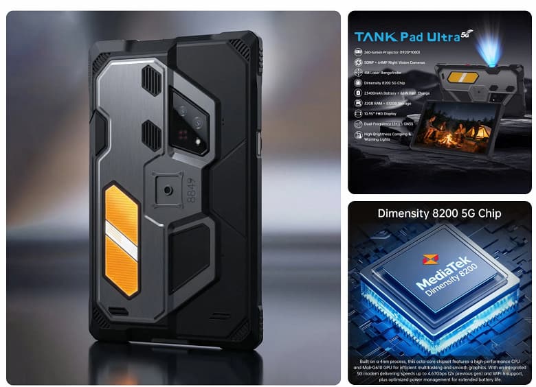 Высокая степень защиты традиционно считается прерогативой смартфонов, однако на рынке встречаются и «бронированные» планшеты. Ярким примером служит Tank Pad Ultra — аппарат в массивном укрепленном корпусе, обладающий невероятно емким аккумулятором.