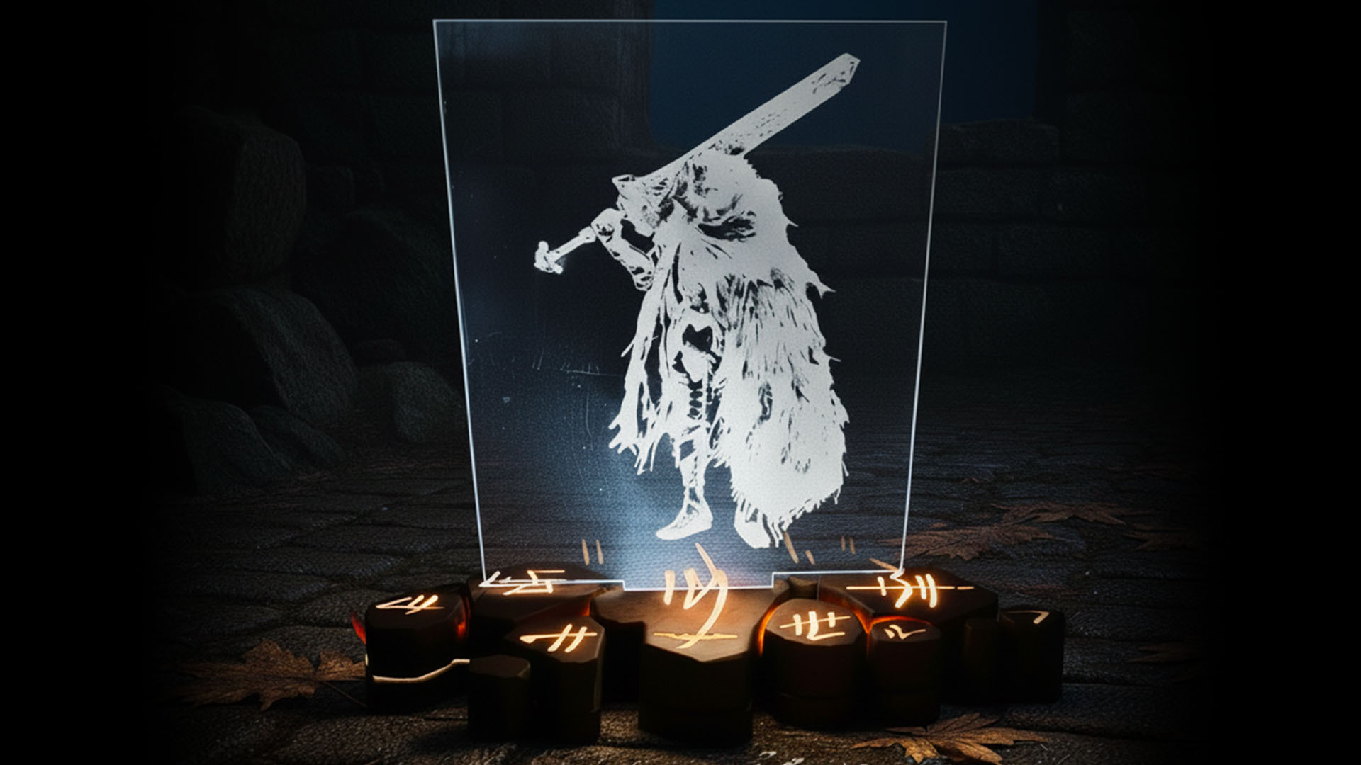 Основание светильника дополнено светодиодной подсветкой, которая проявляет сияющие магические руны под ногами Блайда, напоминая о милости золотого света, ведущей Погасших через опасные земли.