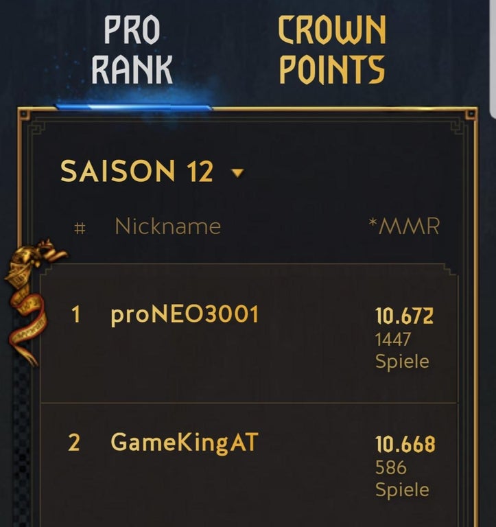 ProNEO3001 обошел в таблице GameKingAT за два дня до окончания 12 рейтингового сезона в Gwent, выдав серию удачных матчей с винрейтом в 75%. Первое место в этом сезоне было очень важным — оно обеспечивало участие в GWENT WORLD MASTERS.