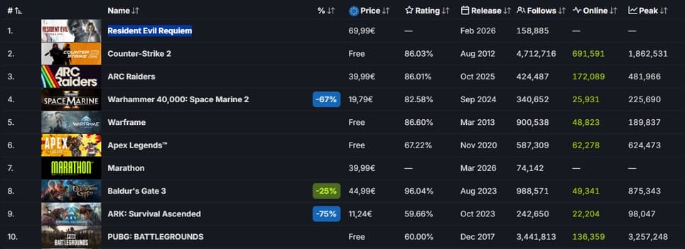 Столь высокие оценки моментально конвертировались в успех на рынке: по объёму выручки от цифровых предзаказов в Steam игра вырвалась на первое место, потеснив даже многолетнего лидера в лице Counter-Strike 2.