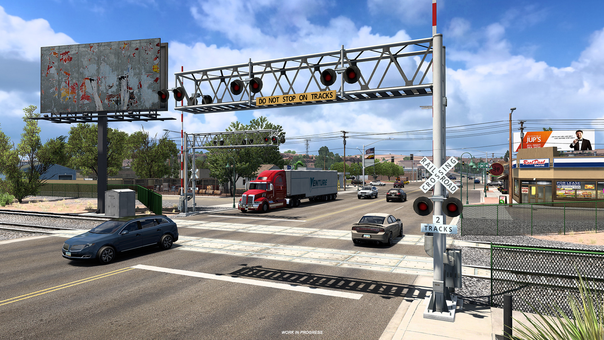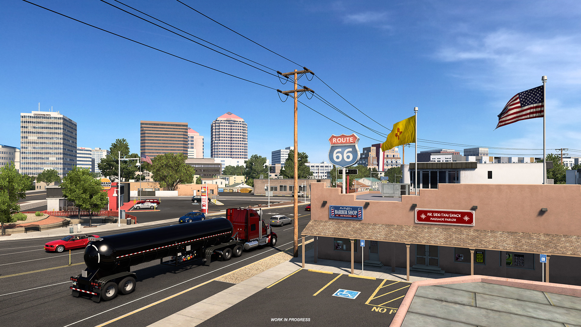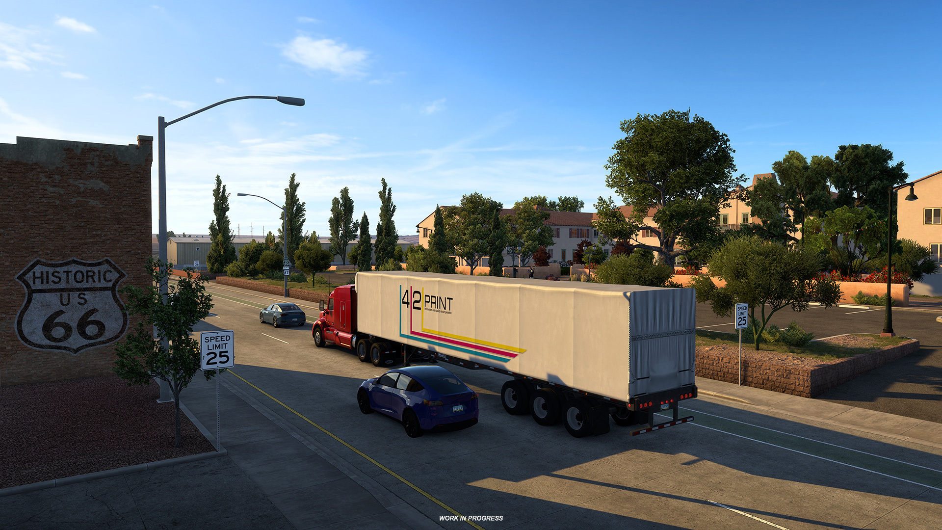 Пересекши границу с Нью-Мексико, мы продолжили переработку с обновленными образами Галлапа, Альбукерке и Тукумкари. Хотя эти места уже были любимыми частями мира ATS, их обновленные версии теперь лучше передают архитектурный стиль, атмосферу и структуру дорог, делающие каждое сообщество уникальным.