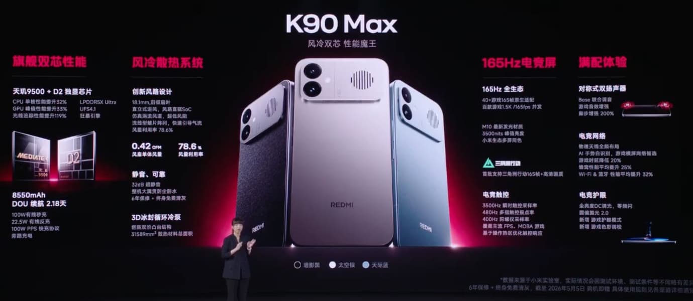 Компания Xiaomi анонсировала выход Redmi K90 Max — бескомпромиссного флагмана, созданного для максимальных нагрузок. Аппарат базируется на передовой платформе MediaTek Dimensity 9500, а активная система охлаждения со встроенным вентилятором гарантирует стабильно высокую производительность даже в ресурсоемких играх. Впечатляющий экран с частотой обновления 165 Гц обеспечивает невероятную плавность картинки в поддерживаемых проектах.