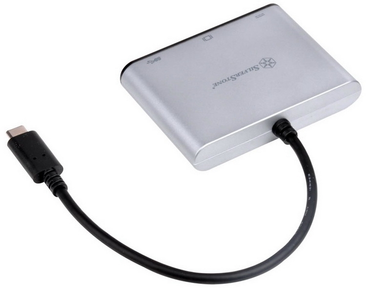 Современные графические адаптеры для настольных систем без проблем поддерживают подключение от 4 до 6 мониторов одновременно, но всё же встречаются ситуации, когда и этого недостаточно. На этот случай в арсенале компании SilverStone имеется устройство SST-EP06C, представляющее собой компактную внешнюю видеокарту с интерфейсом USB 3.1. Выглядит она как небольшая коробочка с хвостиком длиной 170 мм, который заканчивается набирающим популярность разъёмом USB типа С.