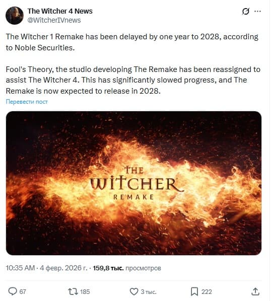 Согласно сведениям польского инвестиционного банка Noble Securities, значительная часть кадрового потенциала и техническая поддержка со стороны студии Fool’s Theory теперь перенаправлены на The Witcher 4, которая официально признана главной целью разработчиков.