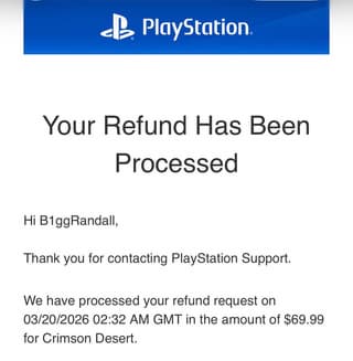 В сообществе Reddit развернулось масштабное обсуждение, где пользователи делятся своим опытом. Многие подтверждают, что Sony начала одобрять запросы на возврат денег за Crimson Desert — событие из ряда вон выходящее для цифрового магазина компании. Согласно многочисленным отчетам за прошедшие выходные, счет успешных возвратов идет на десятки. Геймеры аргументируют свои заявки плохой оптимизацией, при этом технические огрехи замечают даже владельцы мощной PS5 Pro — им также возвращают средства после обращения в службу поддержки.