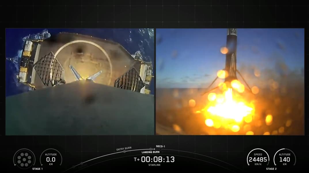 Для первой ступени B1088 этот полет стал 15-й эксплуатацией. После того как ступень отработала и отделилась, она совершила управляемую посадку на автономную морскую платформу OCISLY в Тихом океане.