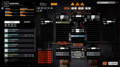 Battletech может слегка напугать интерфейсом: много пунктов, таблички, параметры, куча окон с текстом. Однако осваиваешься быстро и понимаешь, что все расположено логично. Меню экипировки меха, к примеру, содержит много информации и на первый взгляд громоздко, но запутаться в нем сложно — слоты под нужное оружие подсвечиваются, а уведомления предупредят, если на робота навешано слишком много всего или недостает снарядов для того или иного вида оружия.