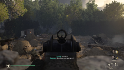 С демонстрацией ужасов войны, которыми разработчики стращали до релиза, тоже не задалось. Оторванные конечности бойцов не впечатляют, ведь в Black Ops 3 мы лишались рук и ног с видом от первого лица, а действовать более тонко WWII не пытается. В геймплее это постарались выразить несколькими элементами: на место регенерации здоровья пришли исцеляющие аптечки, но даже на «Ветеране» ими заваливают на каждом шагу. Чтобы передать дух товарищества, ввели систему взаимопомощи: настреляете несколько десятков врагов, и над головой одного из персонажей появится значок — Цуссман бросит аптечку, Пирсон магическим образом подсветит всех противников в округе, другие передадут немного патронов или пополнят запас гранат. Вроде бы неплохая идея, но кажется какой-то надуманной — и пользы мало, и должного эффекта не производит.