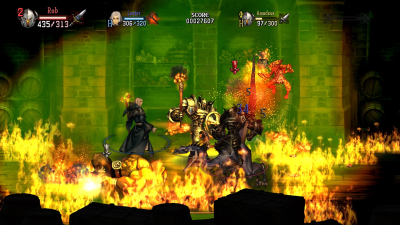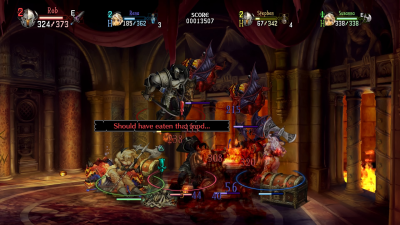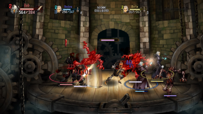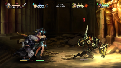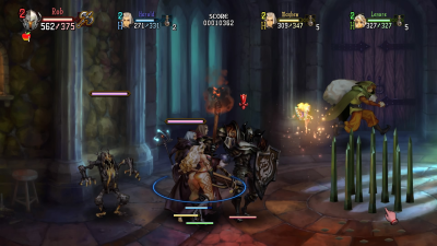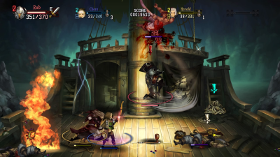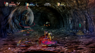У каждого бойца есть уникальные умения. Гном — единственный, кто способен поднимать врагов и швырять на другой край экрана. Маг превращает сундуки с сокровищами в ожившие деревяшки, помогающие в драке, но его физические атаки далеко не так смертоносны, как у воина. Лучница в ближнем бою тоже бесполезна — она лишь отталкивает противников или отбегает, чтобы засыпать их стрелами. Бесполезных персонажей нет, поэтому имеет смысл проходить трудные миссии разношерстной компанией (с ботами или в кооперативе). Как это часто бывает в японских играх, совместные онлайн-сессии устроены не очень удобно — вам нужно наиграть около пяти часов и открыть все локации, чтобы появилась возможность приглашать друзей. А вот локальный кооператив доступен сразу.