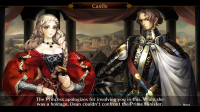 К сожалению, сюжет так и остался одним из наиболее слабых элементов. Сам по себе он вроде бы не так уж плох, в нем даже есть неожиданные повороты, но история в целом не вызывает никаких эмоций, а переживать за королевство, которому со всех сторон грозит опасность, нет никакого желания. Возможно, дело в подаче — диалогов как таковых нет, происходящее во всех подробностях описывается рассказчиком. То есть во время беседы с премьер-министром или принцессой вы не видите ни их реплики, ни свои. Отсутствие даже малейших эмоций на их лицах тоже не помогает — если в визуальных новеллах один и тот же герой обычно изображен в нескольких позах, то здесь ограничиваются одной.
