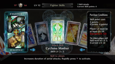 Зато к остальным геймплейным элементам не придерешься —особенно классно реализована прокачка персонажа. Разгребать гору трофеев никогда не надоедает. Все мечи, медальоны и прочие предметы обладают самыми разными характеристиками: какие-то увеличивают запас здоровья, другие повышают урон в воздухе, третьи повышают устойчивость к атакам определенных противников. За повышение уровней выдаются очки навыков, которые тратятся на улучшение характеристик двух категорий: одна одинакова для всех персонажей, а вторая содержит уникальные бонусы для конкретного класса. С каждым «апгрейдом» ощущаешь, что твой герой становится сильнее и крепче.