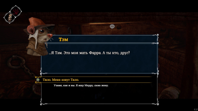 Нам выпадает роль Тило — мышонка-менестреля, очнувшегося в тюремной камере. За что он угодил за решетку, какая его история — мы не знаем. Зато ключ и таинственная записка прямо заявляют, что надо делать сейчас — бежать! Бежать и пуститься на поиски жены Мерры, с которой героя разлучили при аресте.