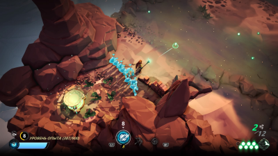 Хотя еще одно заметное достоинство у игры все же есть — порой попадаются занимательные головоломки. То вам нужно разделить отряд лучников на две части, приказав им стрелять по разным мишеням, чтобы открыть дверь. То придется дать хранителям команду встать в определенную точку и создать временный щит, освещающий Отто путь. Ходить по лаве и приближаться к образовавшимся после извержения кристаллам герой не может, зато стражи охотно согласятся отправиться в такие места. А при наличии щита света разрушенная земля под ногами героя будет восстанавливаться, позволяя ему пробегать подобные участки, не получая урона. Но щит не бесконечен — уже через десять секунд он исчезнет, и все вернется к своему прежнему состоянию.
