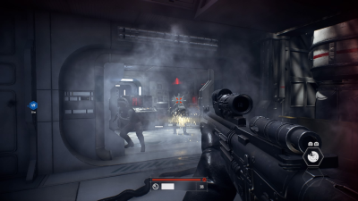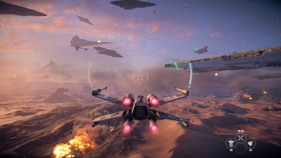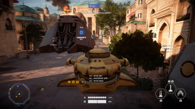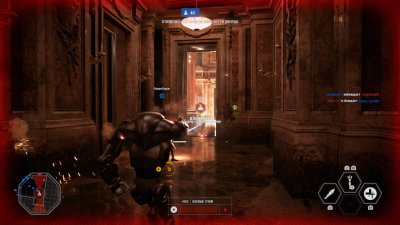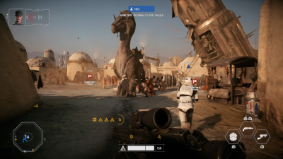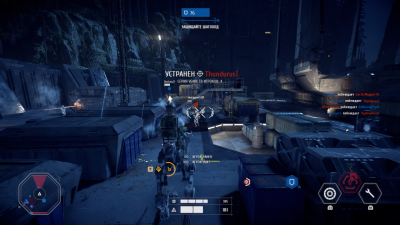 Геймплейно же мультиплеер получился действительно отличным. Режим «Галактическая битва» порой впечатляет масштабами и приносит огромное удовольствие независимо от того, за какую сторону выступаешь и какие задания выполняешь. Сначала надо определиться с классом: стрелок, тяжелый боец, офицер и специалист. Потом за убийства и выполнение задач зарабатываешь очки, которые позволяют потратить либо на истребитель для уничтожения целей с воздуха, либо на именитого персонажа «Звездных войн», либо на особо сильных солдат, вроде огнеметчика у «Первого ордена». При игре за сепаратистов доступны МТТ, реактивные дроиды и бомбардировщики, а у Республики есть AT-RT и штурмовики.