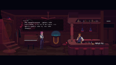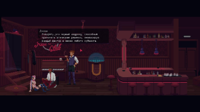 Без великолепно воссозданной атмосферы киберпанка эта задумка сработала бы не так здорово. В игре немного локаций, за пределами бара оказываешься всего несколько раз. Но визуальное оформление, дизайн персонажей и шикарный саундтрек так оживляют придуманный разработчиками мир, что представить, как выглядит город за пределами клуба, очень просто. Ощущение больших масштабов создается не десятками районов, толпами горожан и километрами открытого мира, а убедительно рассказанной историей. Этот мегаполис реален, в нем живут люди, и их судьба вдруг становится небезразлична игроку.