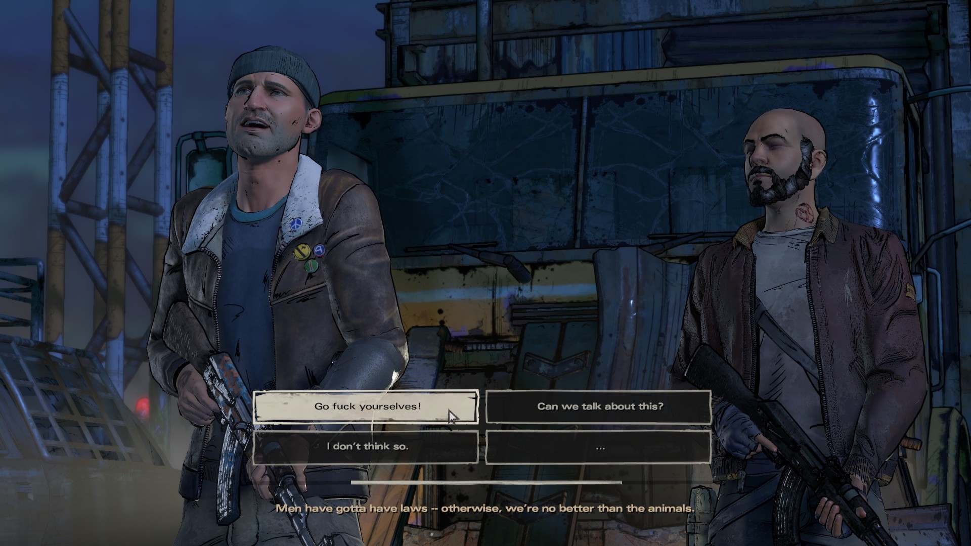Однако для начала проясним один момент. Все знают, что разработчиков хлебом не корми — дай только наобещать игрокам чего-нибудь эдакого. Вот и Telltale хвалилась тем, что на старте третий сезон предложит аж два эпизода. В ход шли громкие заявления о том, что во вступлении нужно рассказать и показать очень многое, поэтому в один выпуск все задуманное ну никак не поместится. Хороший маркетинговый трюк и, технически, студия свои слова сдержала. На релизе мы действительно получили пару серий, вот только их общая продолжительность, кхе-кхе, составляет порядка двух с половиной часов, то есть вполне обычный хронометраж «пилота». Его попросту разрезали пополам без видимых на то причин.