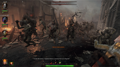 Игровой «режиссер» — искусственный интеллект, ответственный за генерацию сражений — порой буквально издевается над вами, закидывая разномастными тварями. Мало того, что огромный мутант так и норовит сцапать кого-нибудь щупальцами и сожрать (восстановив заодно свое здоровье), так со всех сторон вдобавок наседает шевелящееся море острых зубов и прогнивших рож служителей Нургла. И это море частенько рассекают закованные в нечестивую броню Чемпионы Хаоса.