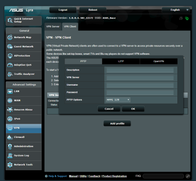 | VPN | Клиент L2TP, PPTP, OpenVPN; сервер PPTP, OpenVPN |