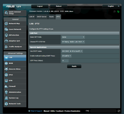 | Проброс портов | Virtual Server, Port Triggering, UPnP, DMZ; IPTV (мост, IGMP Proxy/Snooping, udpxy, VLAN) |