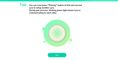 Если закрепить Lyra вертикально, то разъёмы в небольшой выемке на корпусе будут смотреть вниз. Их тут три: гнездо блока питания и два гигабитных Ethernet-порта. В случае набора из нескольких модулей главный из них будет иметь синюю наклейку с надписью Start около блока портов. Именно с него и надо начинать установку Lyra: подключить кабель интернет-провайдера можно подключить к любому порту (устройство его запомнит), а потом можно подсоединять шнур питания. После первоначальной настройки всех параметров можно добавлять в сеть остальные устройства Lyra. Делается это проще простого: зажать на три секунды кнопку Pairing на корпусе основного модуля и подождать, пока он не начнёт мигать зелёным светом. Затем точно так же зажать Pairing на другом модуле и дождаться смены подсветки. Повторить с остальными Lyra.