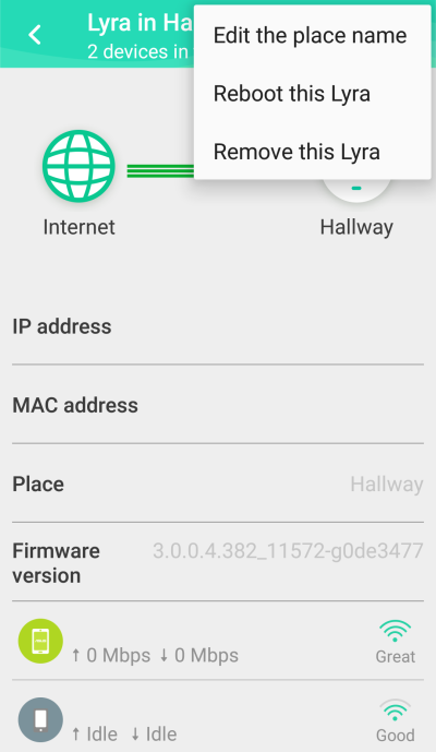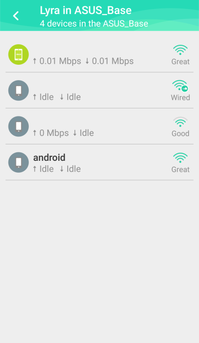 По умолчанию ASUS Lyra позволяет особо настойчивым клиентам подключение к опорной сети, но в настройках его можно принудительно разрешить или запретить для всех. Последний вариант и использовался во время тестирования. Другой важный момент — Lyra не позволяет задать отдельные имена точкам доступа у разных диапазонов и модулей. Так сделано специально для упрощения настройки клиентов. Их роумингом между модулями занимается уже сама Lyra, принудительно перекидывая подключённые устройства с одного модуля на другой. Хотя логику её работы понять трудно: иногда переключение происходит при малейшем перемещении в пространстве, а иногда клиент упорно цепляется к изначальной точке доступа, хотя уровень сигнала уже слишком низкий. И никогда не знаешь, к какому именно диапазону будет подключение. Хотя, как правило, проблем со скоростью не бывает. По идее, в идеальном случае и Lyra, и все клиенты должны поддерживать стандарты 802.11k/v/r, но информацию о Lyra по этому поводу ASUS не даёт.
