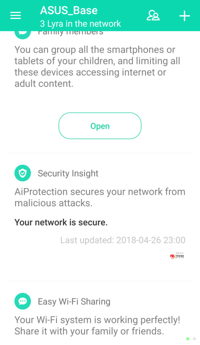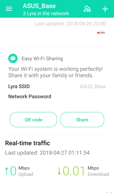 Что же такого доступно в приложении, чего нет в веб-интерфейсе? Настройки ограничения скорости каждого клиента, а также параметры приоритизации типов трафика. Создания профилей пользователей с привязкой к конкретным устройствам. Мониторинг потребления трафика каждого профиля (статистика не работает), а также функции родительского контроля: запрет на посещение различных категорий интернет-ресурсов и расписание доступа. В приложении также можно легко поделиться настройками Wi-Fi для подключения новых клиентов, отправив текстовое сообщение куда-либо или сгенерировав QR-код. Ещё Lyra предлагает установить AiPlayer — собственное приложение ASUS для потокового воспроизведения медиаконтента внутри локальной сети (см. обзор RP-AC56). В целом пока что приложение Lyra не позволяет полностью отказаться от веб-интерфейса, хотя ASUS явно к этому стремится.