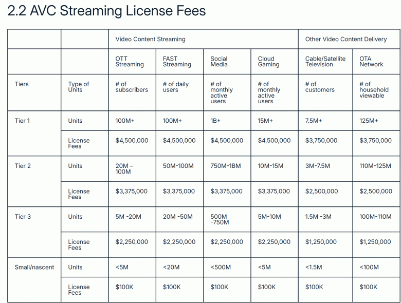 Организация Via Licensing Alliance (Via LA), выступающая администратором патентного портфеля кодеков H.264/AVC, пошла на беспрецедентное ужесточение финансовой политики, радикально повысив стоимость лицензионных отчислений.