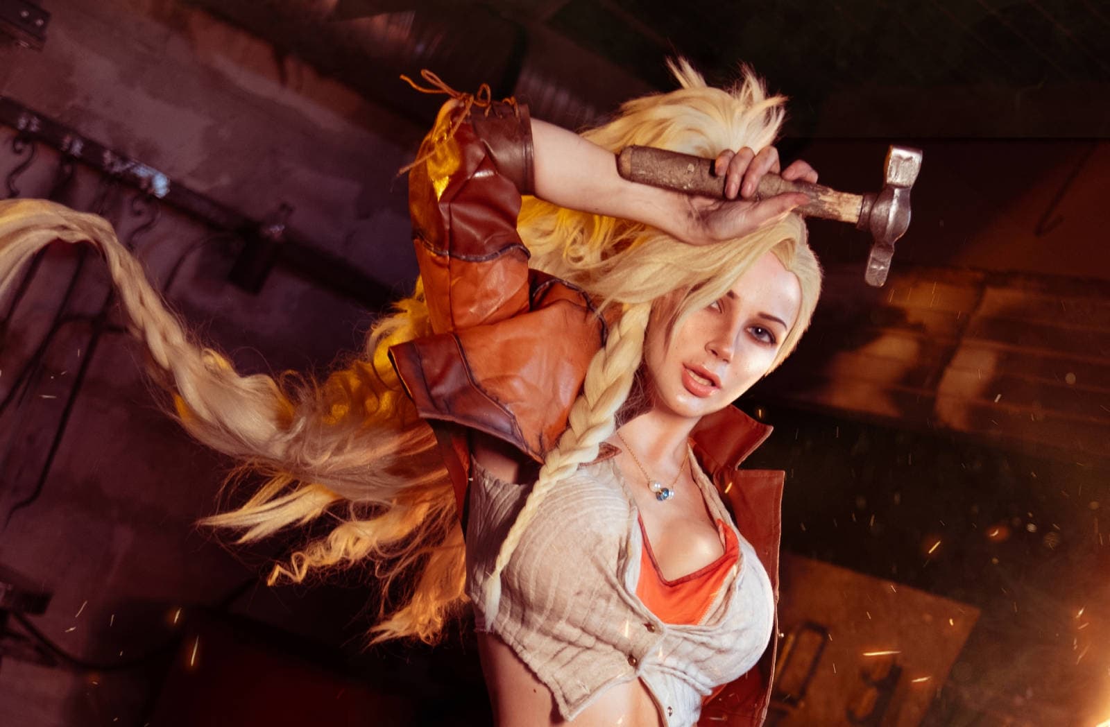 Model Oichi donned the guise of the blacksmith Gemma from Monster Hunter Wilds and journeyed into the Forbidden Lands to forge striking armor and weapons for a monster hunter.
