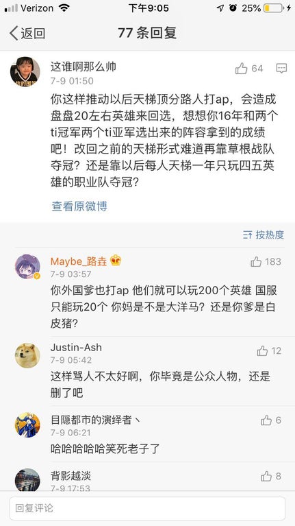 Очередной расистский скандал в преддверии The International. Мидер одной из самых известных китайских команд по Dota 2 позволил себе лишнее в общении c пользователем Weibo.