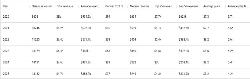 Gamalytic подчёркивает, что расчёты основаны на оценках и в отдельных случаях могут не полностью совпадать с реальными продажами, особенно в сегменте инди‑игр, где данные собрать сложнее. Тем не менее исследователи утверждают, что точность выборки составляет порядка 99%.