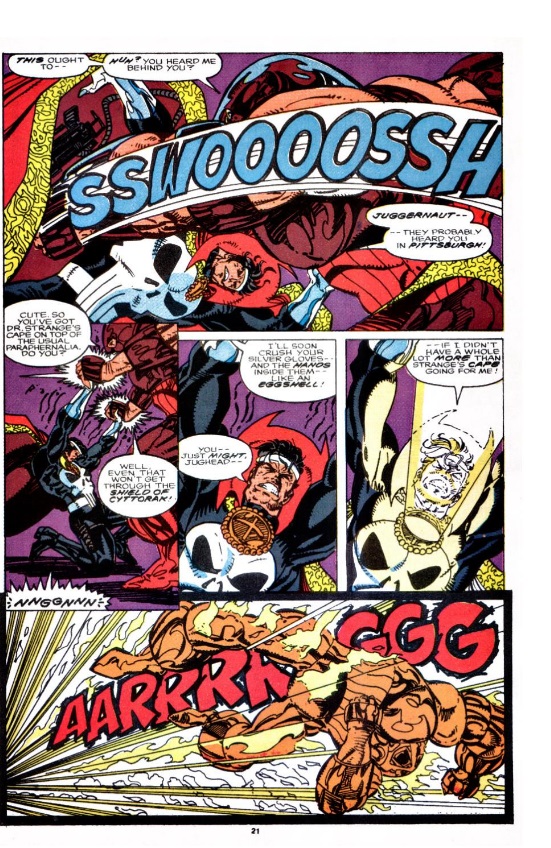 В своей ярости он либо перезаражал, либо переубивал огромное количество героев. Досталось даже Доктору Стрэнджу, но он оказался хитрее. Его астральная проекция вселилась в научившегося убивать вампиров Карателя. Такой душевный дуэт представлял серьезную опасность для Росомахи и остальных вампиров. В результате Каратель смог победить нескольких серьезных соперников, но случайно убил Китти Прайд, которая влезла в битву между ним и Росомахой.