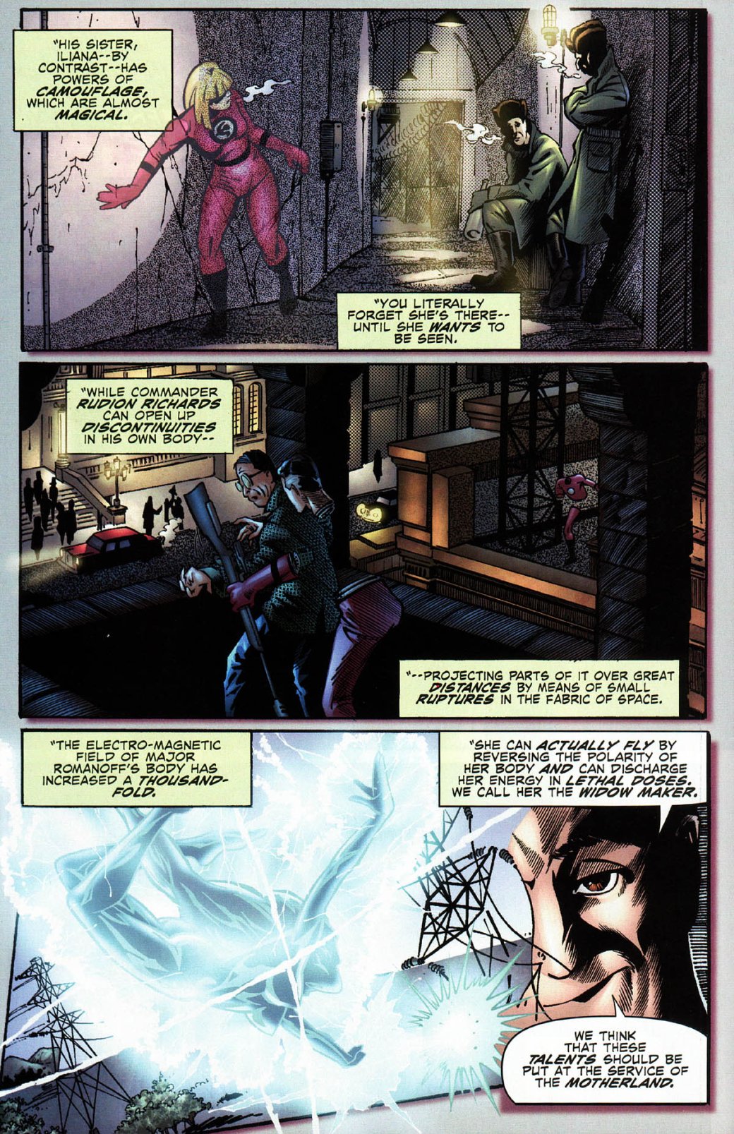 Только состав команды не такой, как у оригинальной Фантастической четверки. В эту вошли Родион Ричардс — умел открывать порталы между частями своего тела, Петр Распутин — это Колосс (покрытый непробиваемым металлом мутант), Ульяна Распутина — невидимка и Наталья Романова, способная покрывать свое тело электромагнитным полем, содержащим тысячи вольт.