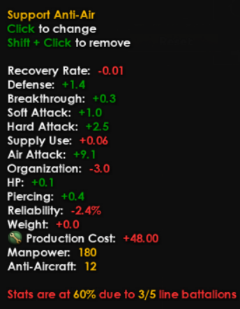 На текущий момент характеристики и количество необходимого снаряжения масштабируются в зависимости от размера полка. Если в составе полка мало батальонов, приданная ему рота поддержки также будет уменьшена. Это сделано для сохранения баланса и предотвращения искусственного усиления малых дивизий.