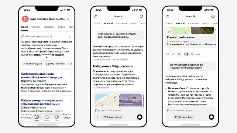 Переключение в диалоговый режим осуществляется через вкладку «Алиса AI», расположенную непосредственно под поисковой строкой. В основе функционала лежит продвинутая модель Alice AI LLM с сотнями миллиардов параметров, которая генерирует развернутые ответы с учетом локальной специфики и культурного контекста. В этом режиме пользователи могут уточнять детали, создавать контент, а также загружать файлы и изображения для анализа. История взаимодействий сохраняется, позволяя в любой момент вернуться к обсуждению начатой темы.