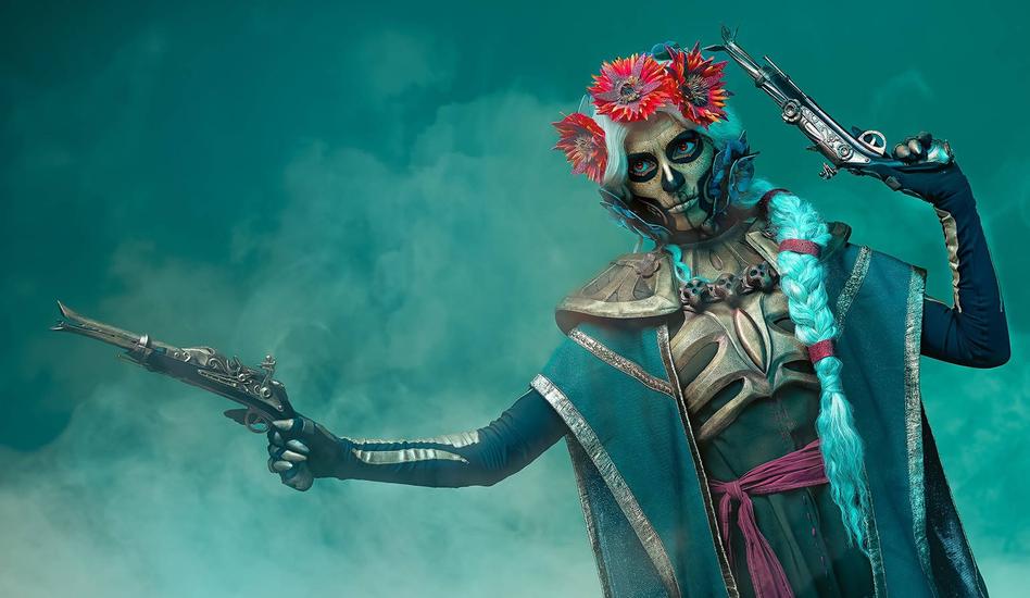 Косплеерша LUNA воплотила образ героини Муэрты из MOBA Dota 2, стремящейся обрушить на врагов бесплотный гнев проклятых, палить из эфемерных пистолетов и преследовать души, неспособные смириться с уходом из жизни.