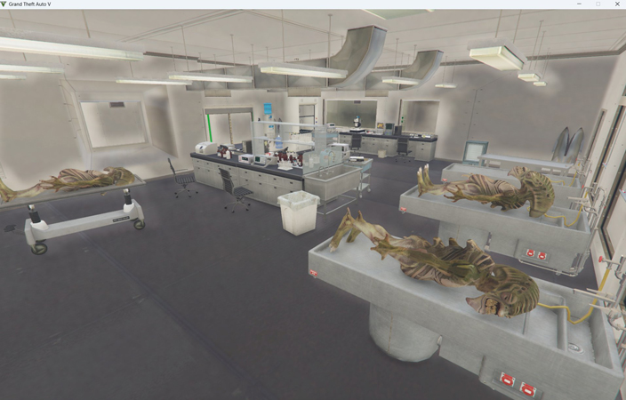 Останется ли была ли тайной для локальных сообществ информация о том, сколько материалов было исключено из GTA 5 до запуска? Это непросто утверждать. Тем не менее, в этом месяце мы стали ближе к разгадке. Пользователи с никами Transmet и Antasurris, используя методы реверс-инжиниринга, восстановили файлы из версии игры для PS3, датируемой примерно 2012 годом. Ассеты свидетельствуют о наличии лаборатории под военной базой Форт Занкудо, включающей операционные столы с инопланетянами. HeySlickThatsMe предполагает, что эти помещения могли быть предназначены для миссий в GTA Online.